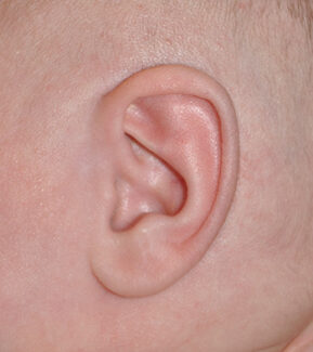 This 3 week old infant shows Lidding Ear Deformity, during their initial visit and after 8 weeks of ear molding treatment.