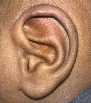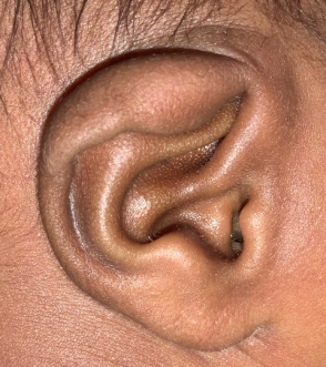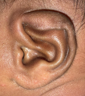 This 1 week old infant displays Lidding Ear Deformity, during their initial treatment and after 8 weeks of ear molding treatment.