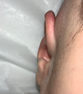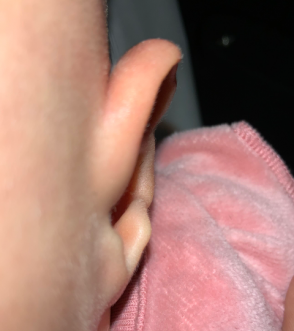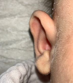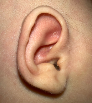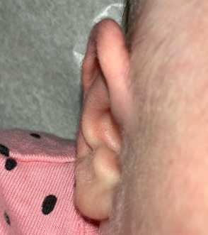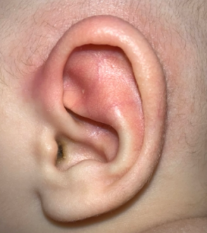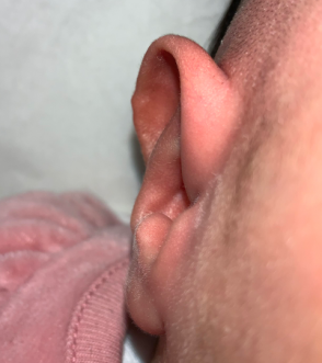 This shows an 11 week old infant with a Prominent Ear Deformity, during their initial visit and after 6 months post op, following ear molding treatment.